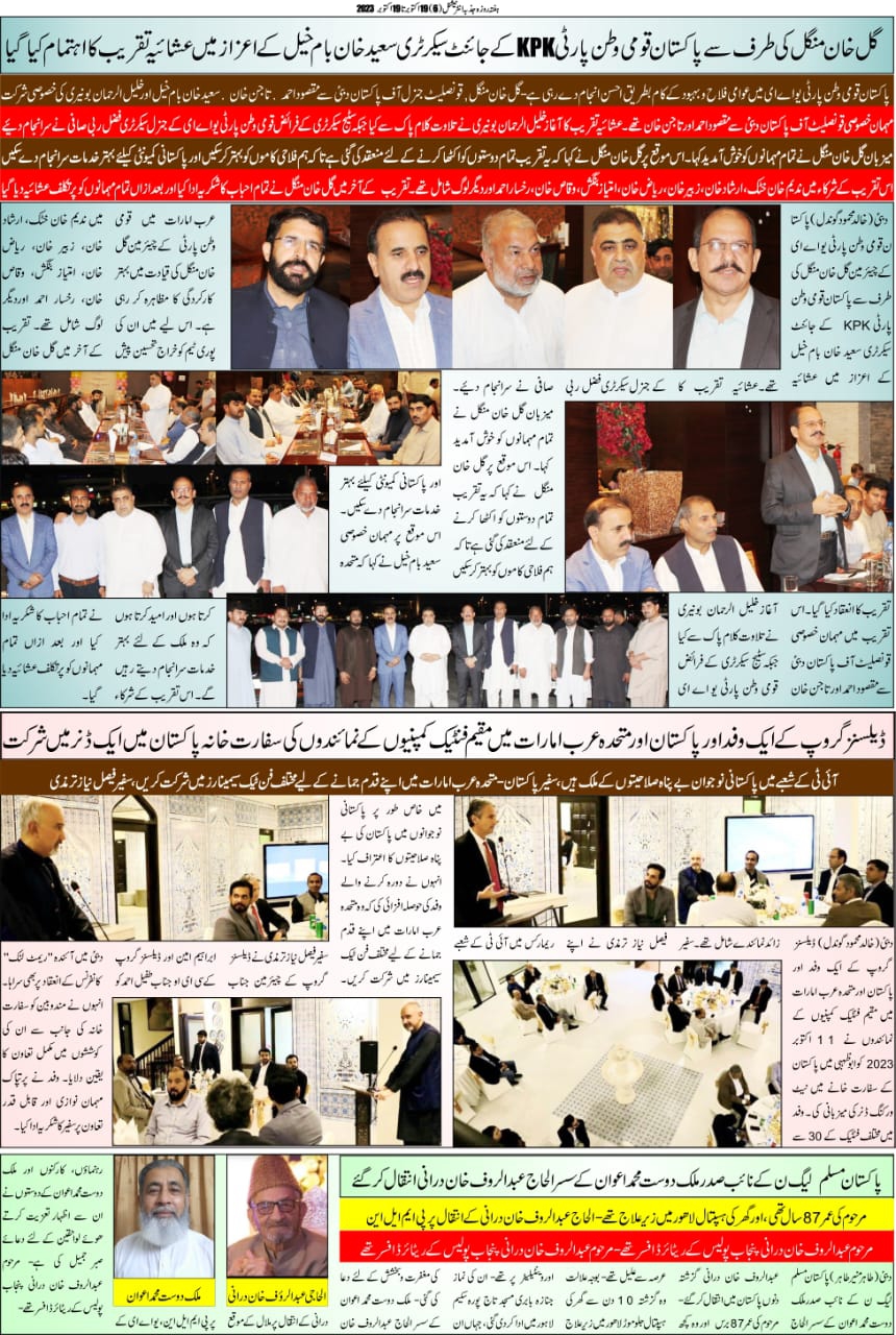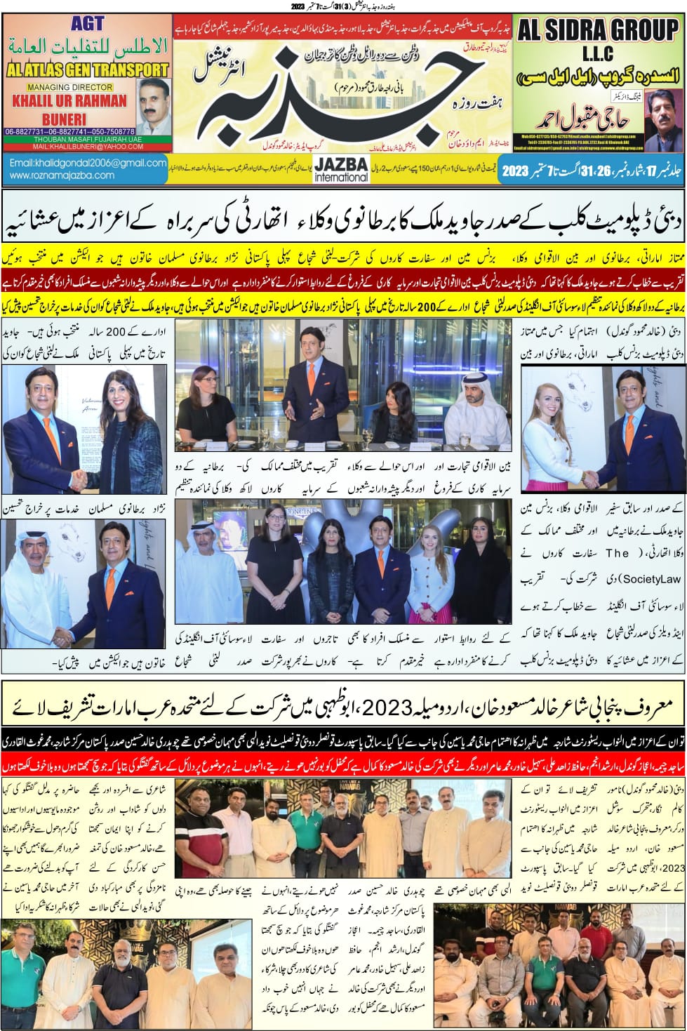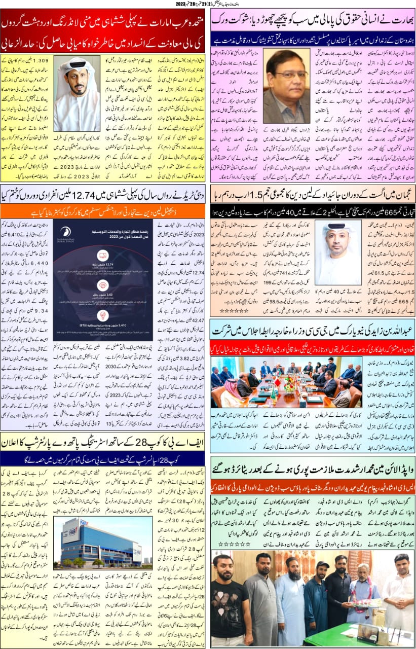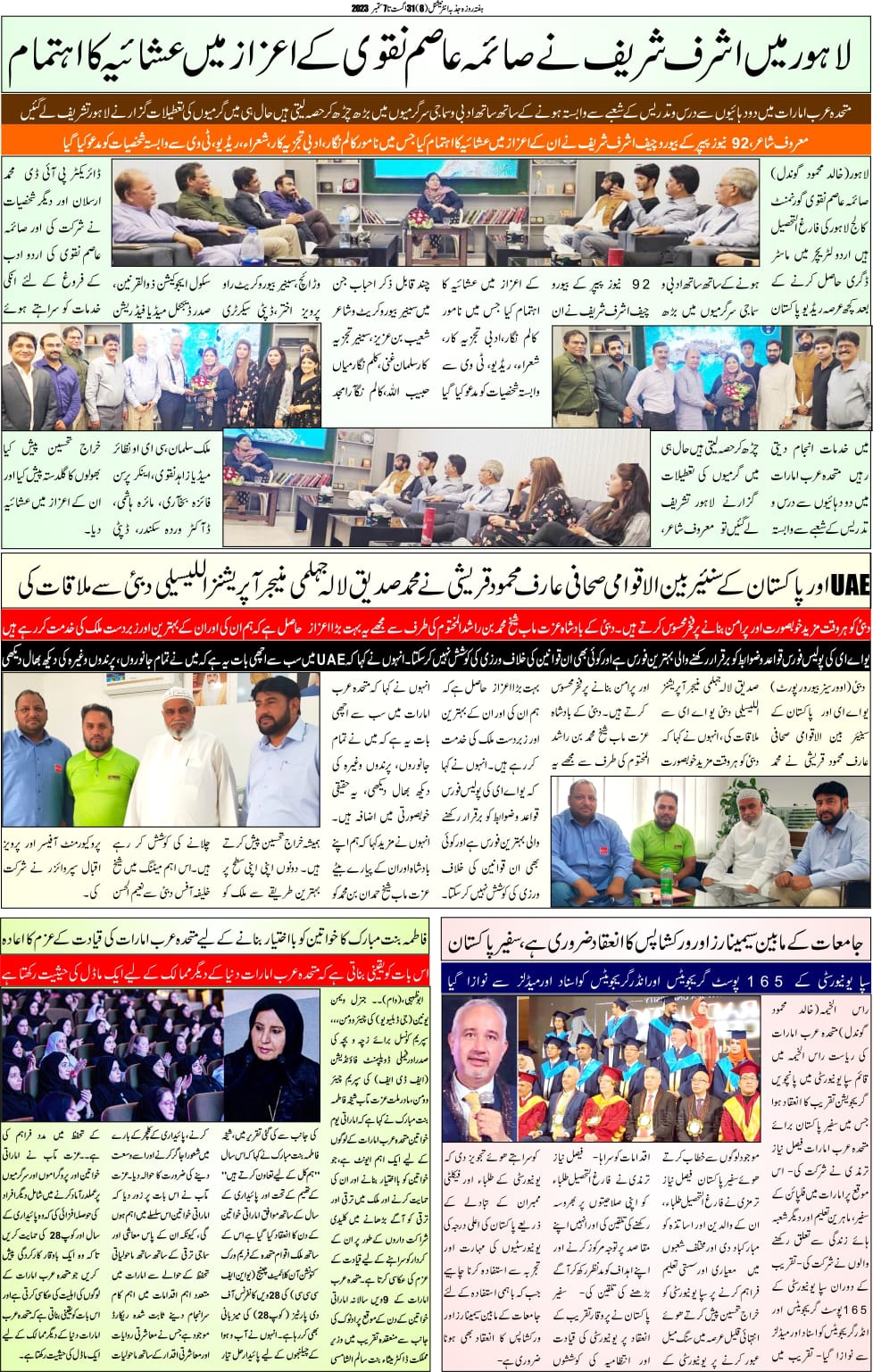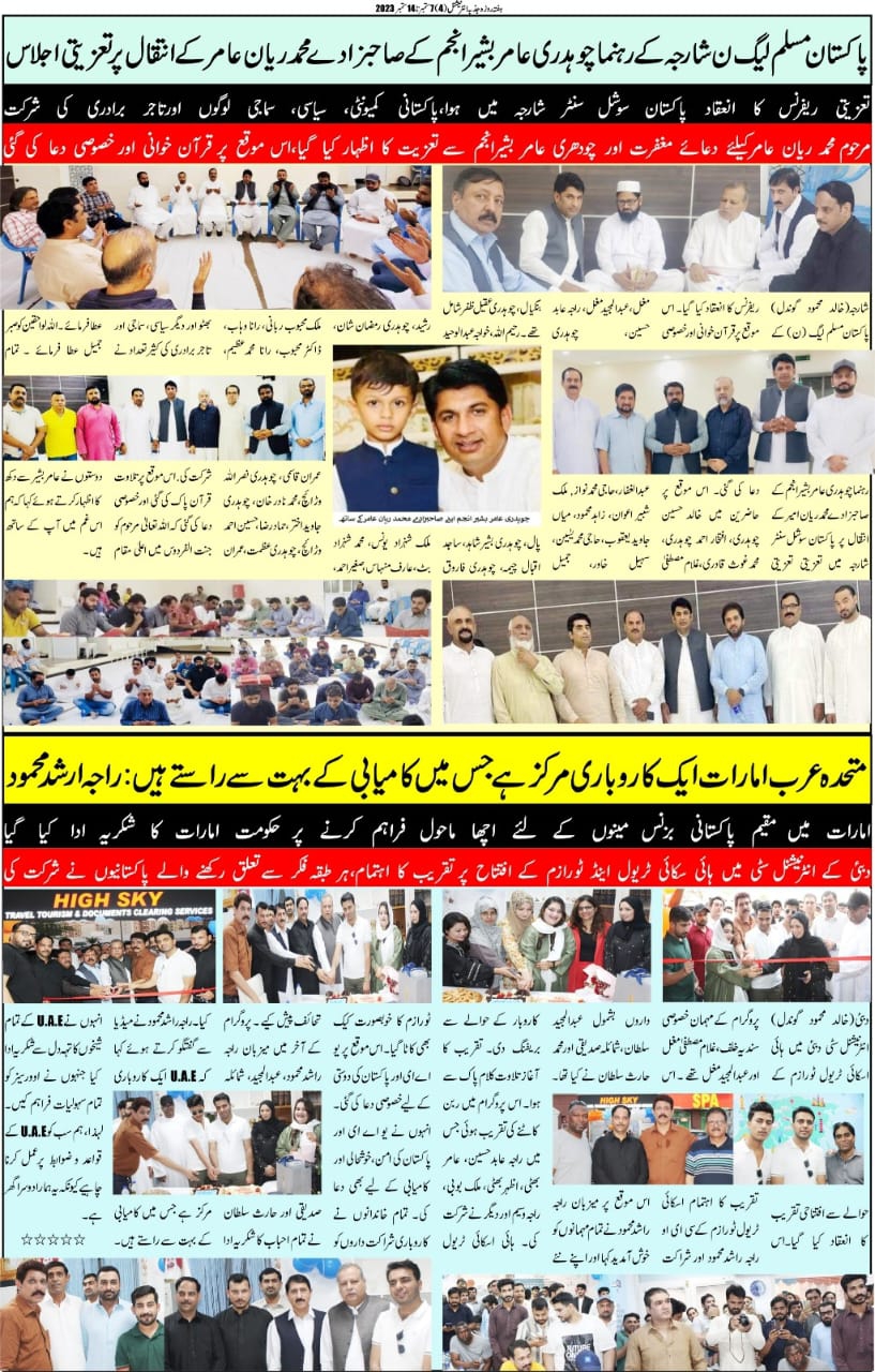 دبئی (طاہر منیر طاہر) انٹیرئیرکمپنی PZA Interiors کے اونر جعفرعباس کی جانب سے دبئی میں کاروباری برادری کے اعزاز میں افطارڈنر کا اہتمام کیا جس میں پاکستانی کمیونٹی کے لوگوں نے شرکت کی- تقریب کے مہمانِ خصوصی ڈپٹی قونصلر جنرل رحیم اللہ خان، ہیڈ آف ایڈوائزری شیخ ماجد راشد المعلا آفس حذیفہ ابراہیم تھے۔ تقریب میں صدر پی ٹی آئی ابو ظہبی محمد ثقلین مہرو، معروف بزنس مین اختر حسین بوٹو، راجہ محمد عثمان، انجینئر فیصل حیات سمیت پاکستانی، ہندوستانی، عربی اور یوروپین ممالک سے تعلق رکھنے والی کاروباری شخصیات نے افطار ڈنر میں شرکت کی۔ حذیفہ ابراہیم نے گفتگو کرتے ہوئے کہا کہ امارات کاروبار کے لیے دنیا کا بہترین ملک ہے اور آپ قوانین کی پاسداری کرتے ہوئے یہاں آزادانہ کاروبار کر سکتے ہیں۔ شرکا نے امارات میں بہتر کاروباری ماحول پر گفتگو کرتے ہوئے اماراتی حکومت کا شکریہ ادا کیا کہ انہوں نے یہاں بہترین کاروباری ماحول فراہم کیا ہے اور ساری دنیا سے سرمایہ کار آ کر یہاں کاروبار کر رہے ہیں۔ میزبان جعفر عباس نے شرکائے تقریب کا شکریہ ادا کیا اور اس عزم کا اظہار کیا کہ وہ امارات میں انٹیرئیر کی فیلڈ میں اپنی پیشہ ورانہ مہارت کے ساتھ امارات کی معیشت میں مثبت کردار ادا کرتے رہیں گے۔