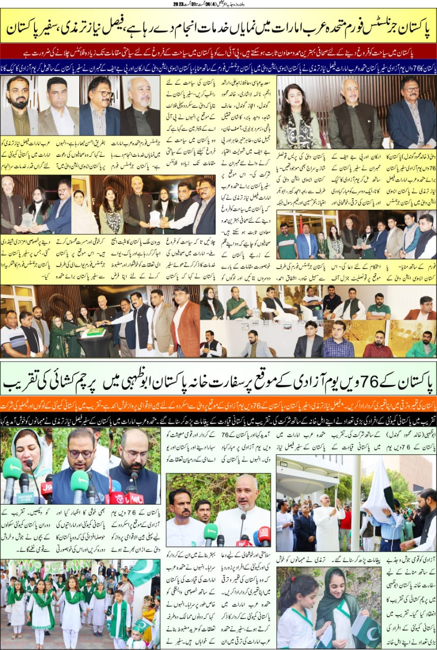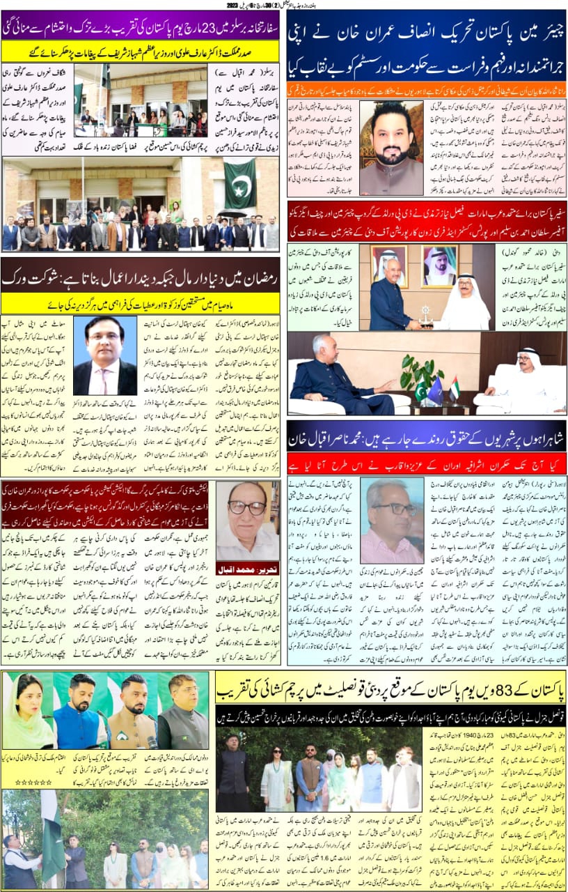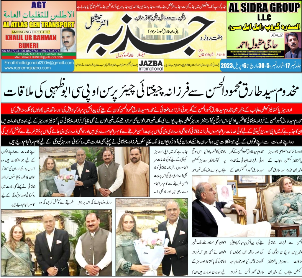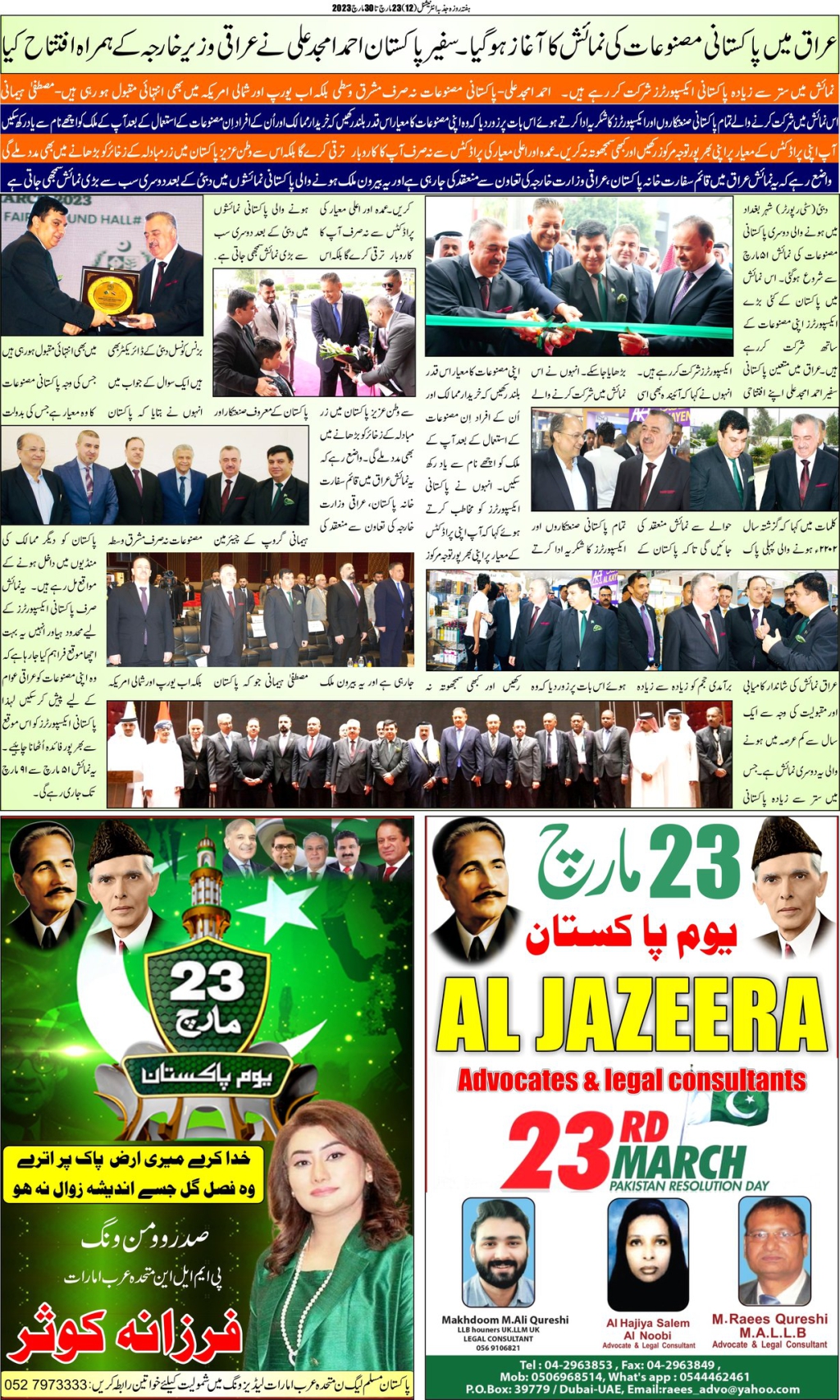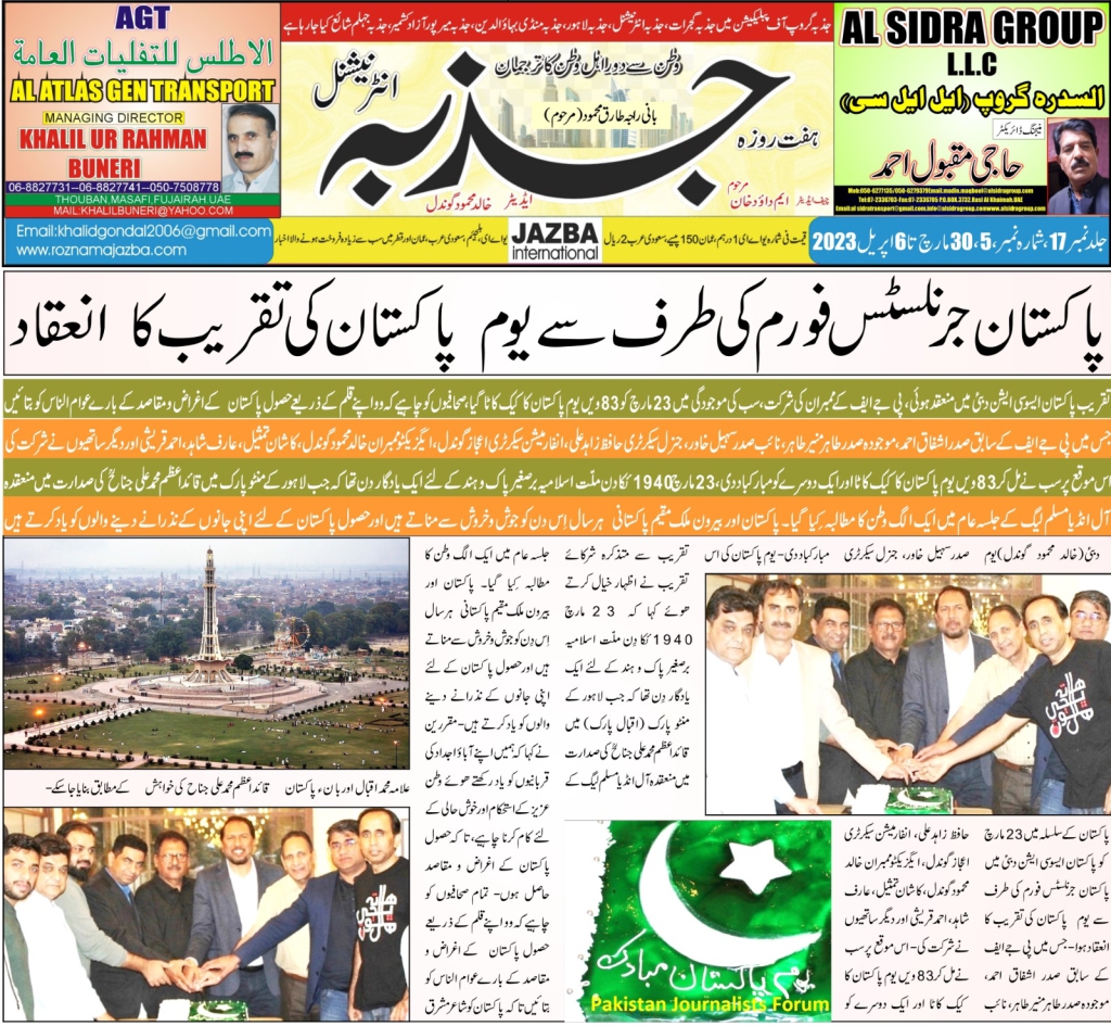 دبئی (طاہر منیر طاہر) انٹیرئیرکمپنی PZA Interiors کے اونر جعفرعباس کی جانب سے دبئی میں کاروباری برادری کے اعزاز میں افطارڈنر کا اہتمام کیا جس میں پاکستانی کمیونٹی کے لوگوں نے شرکت کی- تقریب کے مہمانِ خصوصی ڈپٹی قونصلر جنرل رحیم اللہ خان، ہیڈ آف ایڈوائزری شیخ ماجد راشد المعلا آفس حذیفہ ابراہیم تھے۔ تقریب میں صدر پی ٹی آئی ابو ظہبی محمد ثقلین مہرو، معروف بزنس مین اختر حسین بوٹو، راجہ محمد عثمان، انجینئر فیصل حیات سمیت پاکستانی، ہندوستانی، عربی اور یوروپین ممالک سے تعلق رکھنے والی کاروباری شخصیات نے افطار ڈنر میں شرکت کی۔ حذیفہ ابراہیم نے گفتگو کرتے ہوئے کہا کہ امارات کاروبار کے لیے دنیا کا بہترین ملک ہے اور آپ قوانین کی پاسداری کرتے ہوئے یہاں آزادانہ کاروبار کر سکتے ہیں۔ شرکا نے امارات میں بہتر کاروباری ماحول پر گفتگو کرتے ہوئے اماراتی حکومت کا شکریہ ادا کیا کہ انہوں نے یہاں بہترین کاروباری ماحول فراہم کیا ہے اور ساری دنیا سے سرمایہ کار آ کر یہاں کاروبار کر رہے ہیں۔ میزبان جعفر عباس نے شرکائے تقریب کا شکریہ ادا کیا اور اس عزم کا اظہار کیا کہ وہ امارات میں انٹیرئیر کی فیلڈ میں اپنی پیشہ ورانہ مہارت کے ساتھ امارات کی معیشت میں مثبت کردار ادا کرتے رہیں گے۔