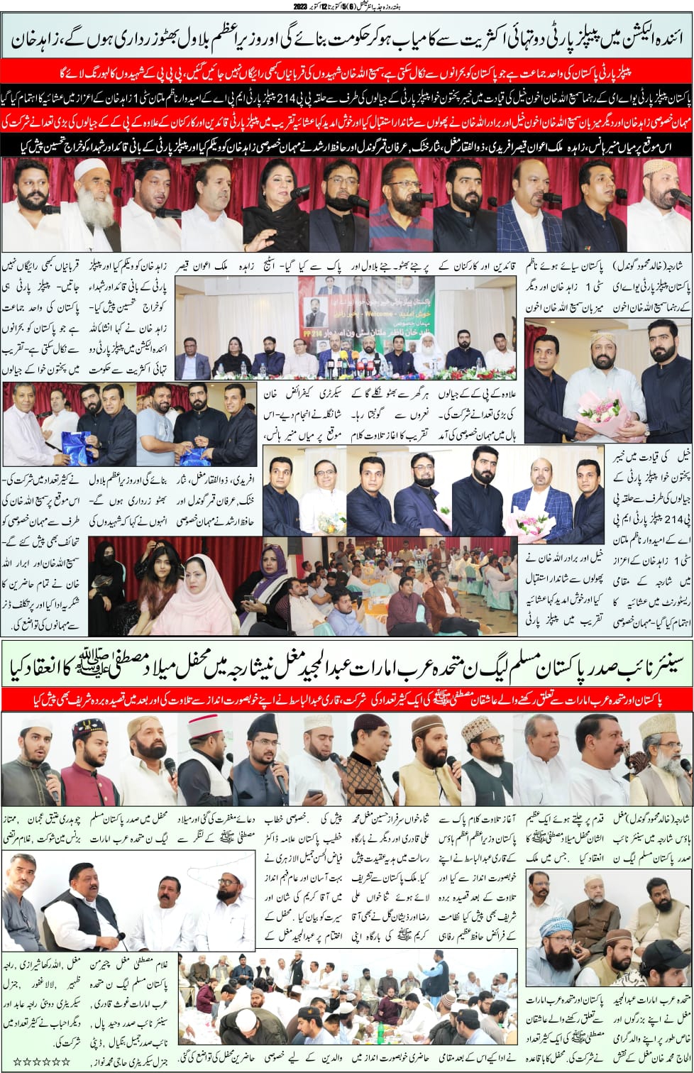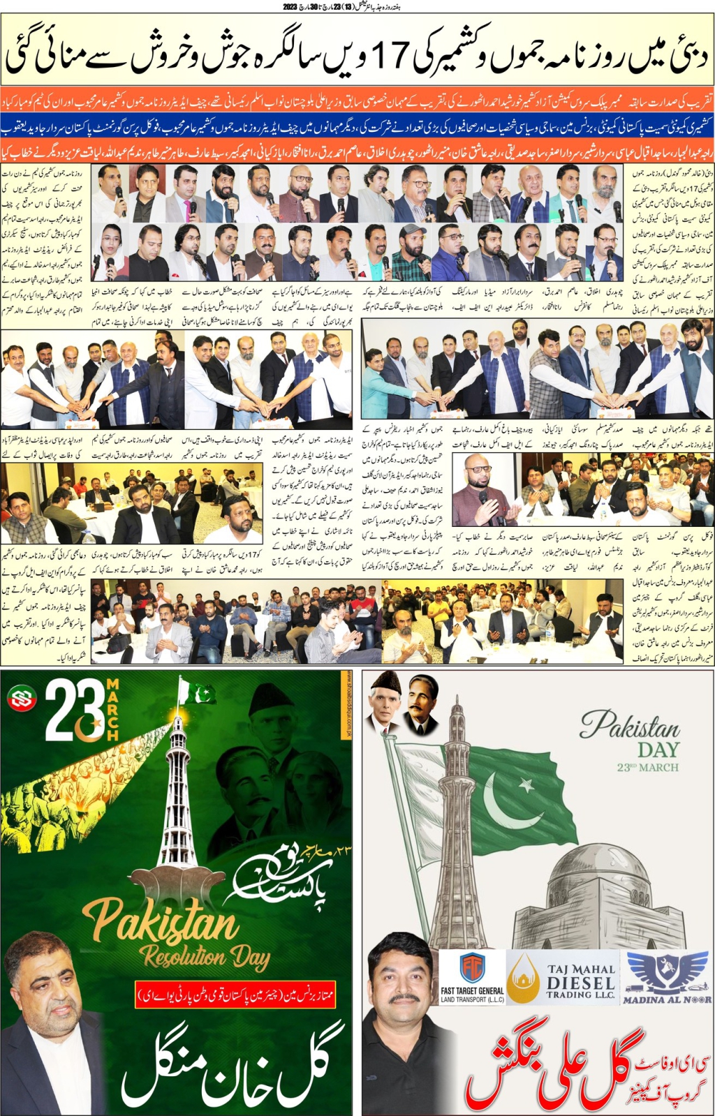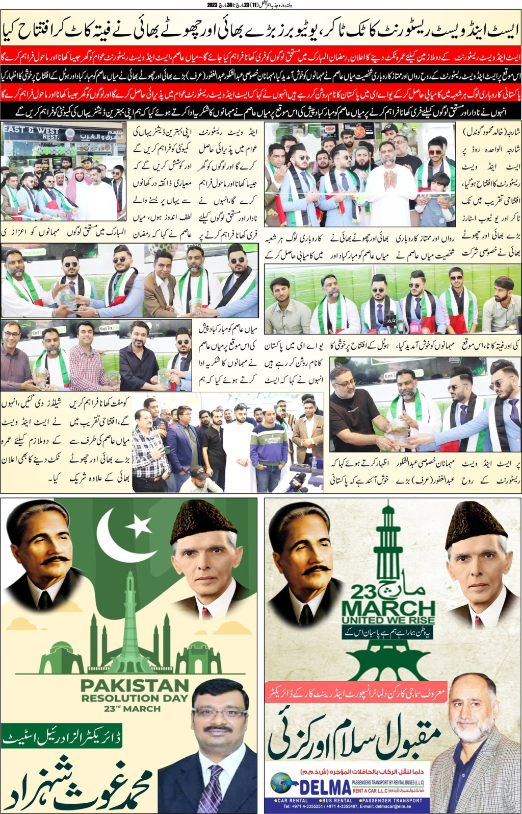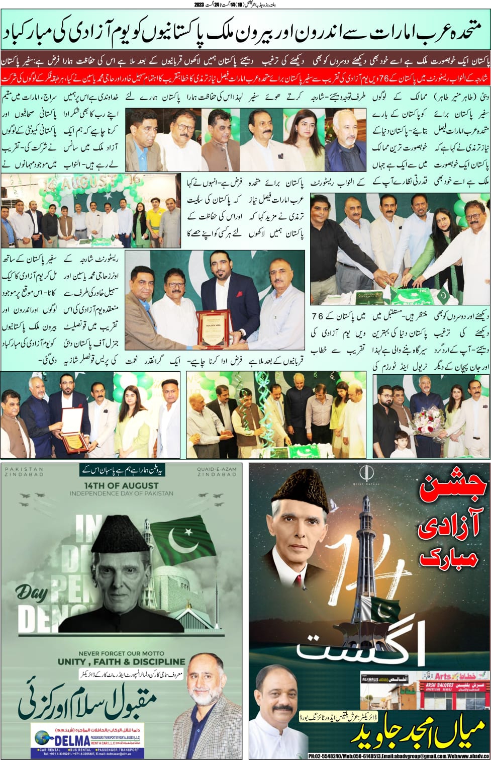 دبئی (طاہر منیر طاہر) انٹیرئیرکمپنی PZA Interiors کے اونر جعفرعباس کی جانب سے دبئی میں کاروباری برادری کے اعزاز میں افطارڈنر کا اہتمام کیا جس میں پاکستانی کمیونٹی کے لوگوں نے شرکت کی- تقریب کے مہمانِ خصوصی ڈپٹی قونصلر جنرل رحیم اللہ خان، ہیڈ آف ایڈوائزری شیخ ماجد راشد المعلا آفس حذیفہ ابراہیم تھے۔ تقریب میں صدر پی ٹی آئی ابو ظہبی محمد ثقلین مہرو، معروف بزنس مین اختر حسین بوٹو، راجہ محمد عثمان، انجینئر فیصل حیات سمیت پاکستانی، ہندوستانی، عربی اور یوروپین ممالک سے تعلق رکھنے والی کاروباری شخصیات نے افطار ڈنر میں شرکت کی۔ حذیفہ ابراہیم نے گفتگو کرتے ہوئے کہا کہ امارات کاروبار کے لیے دنیا کا بہترین ملک ہے اور آپ قوانین کی پاسداری کرتے ہوئے یہاں آزادانہ کاروبار کر سکتے ہیں۔ شرکا نے امارات میں بہتر کاروباری ماحول پر گفتگو کرتے ہوئے اماراتی حکومت کا شکریہ ادا کیا کہ انہوں نے یہاں بہترین کاروباری ماحول فراہم کیا ہے اور ساری دنیا سے سرمایہ کار آ کر یہاں کاروبار کر رہے ہیں۔ میزبان جعفر عباس نے شرکائے تقریب کا شکریہ ادا کیا اور اس عزم کا اظہار کیا کہ وہ امارات میں انٹیرئیر کی فیلڈ میں اپنی پیشہ ورانہ مہارت کے ساتھ امارات کی معیشت میں مثبت کردار ادا کرتے رہیں گے۔