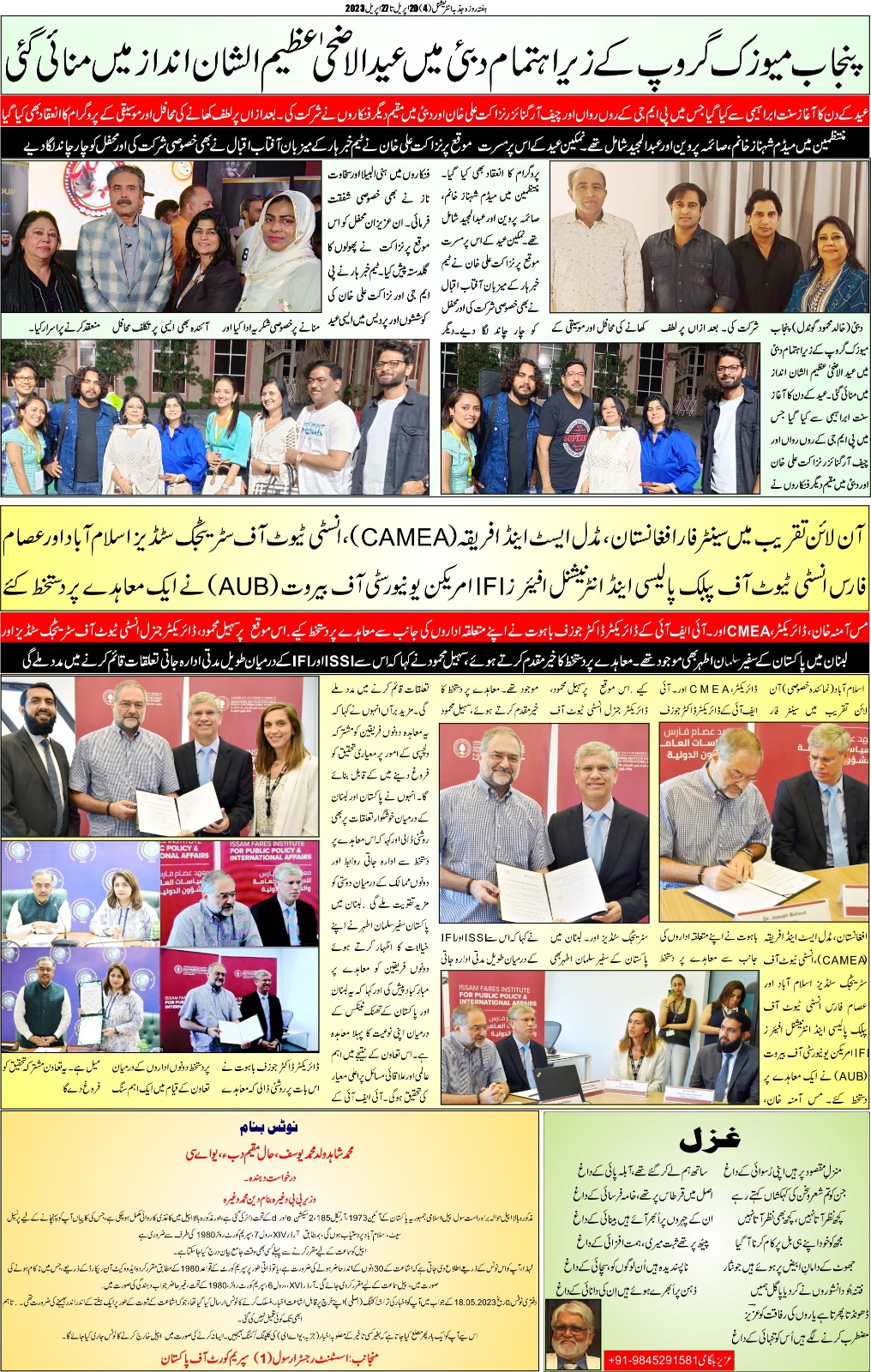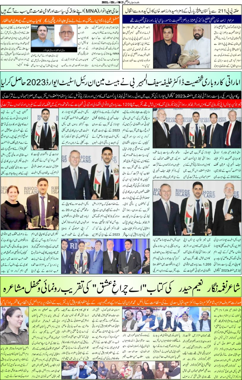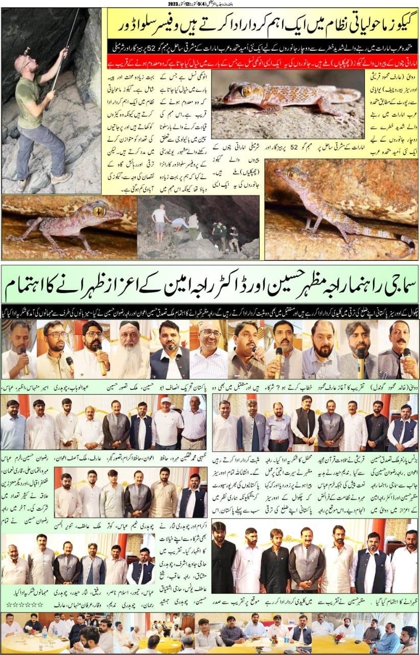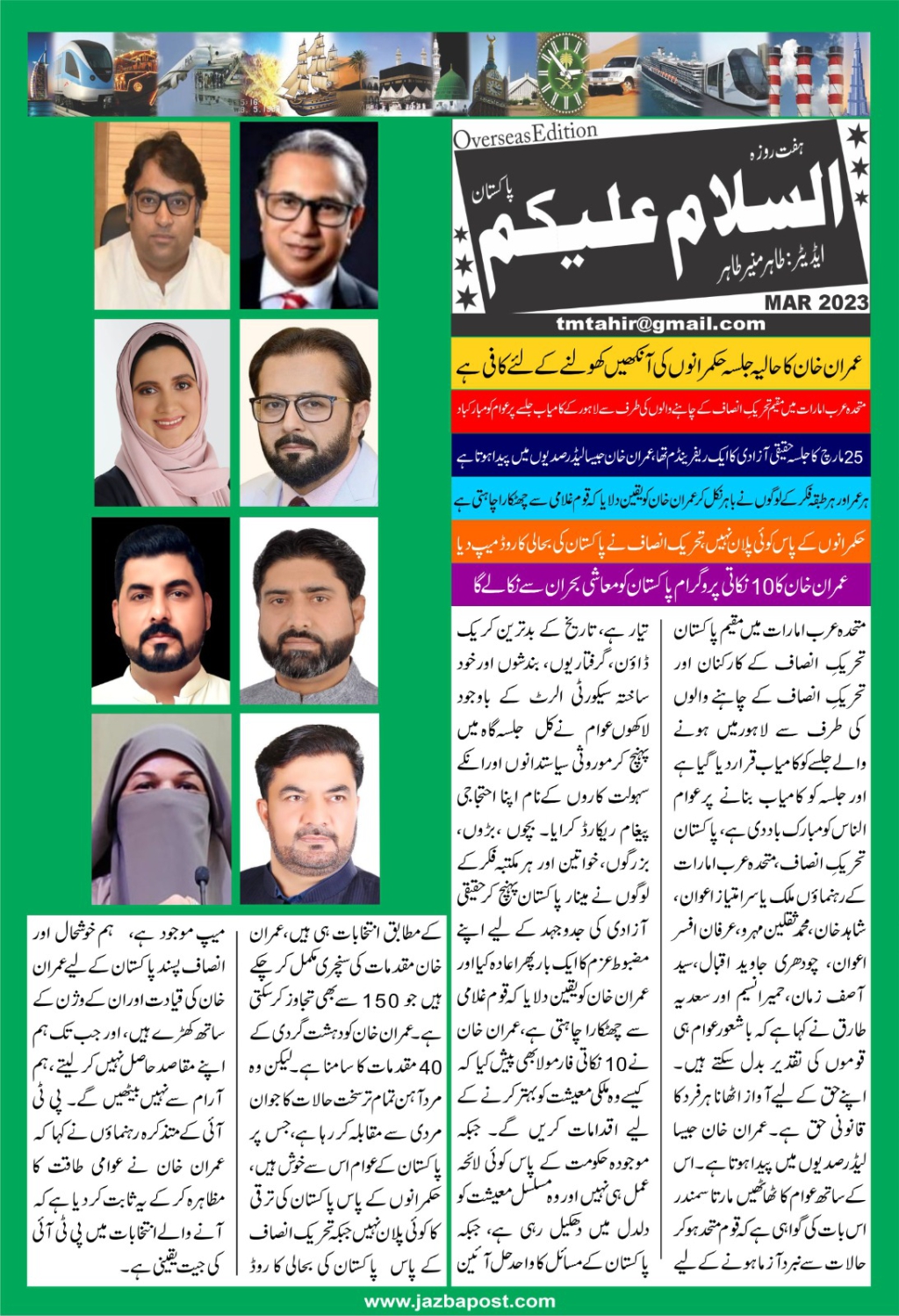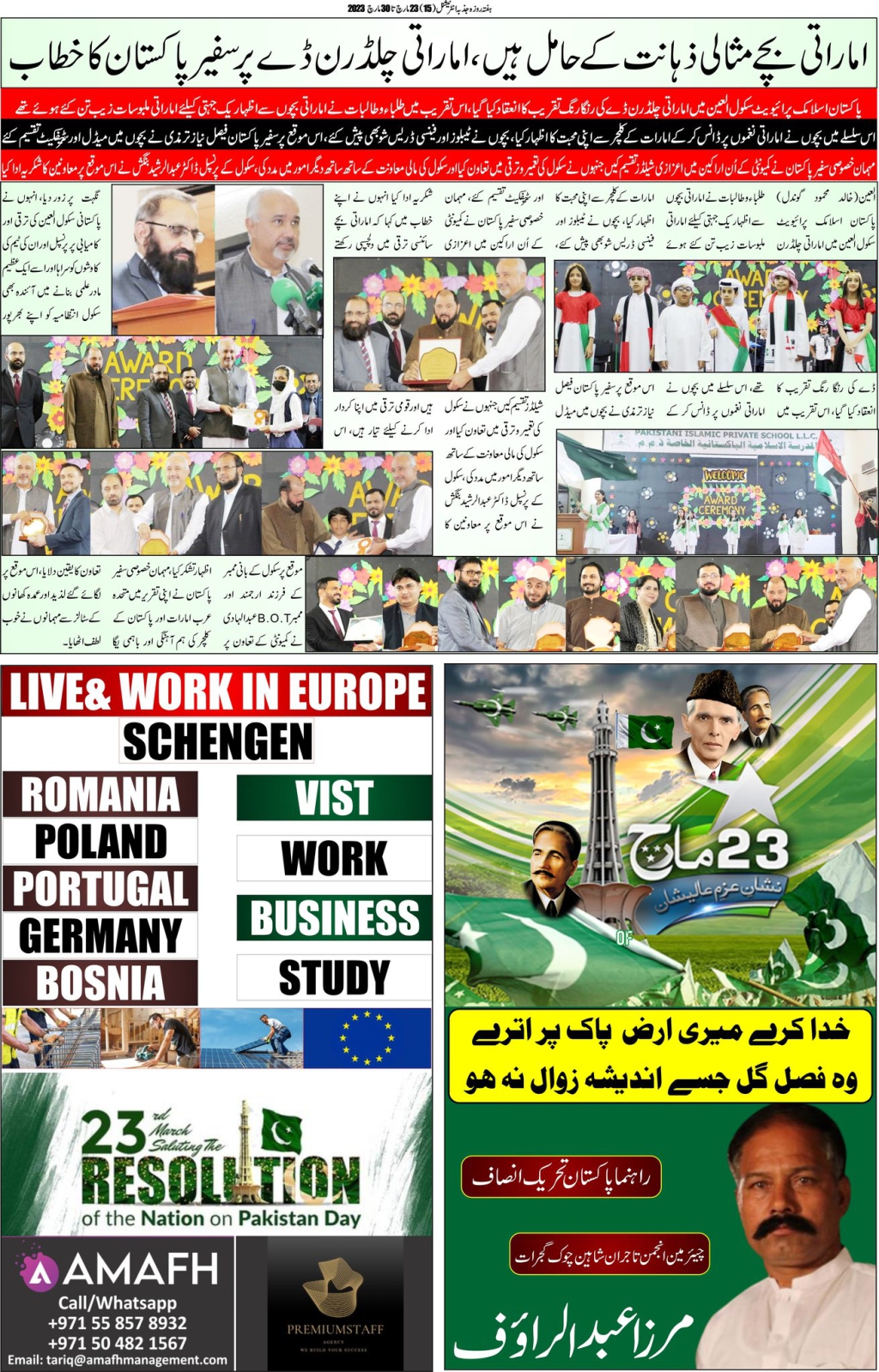 دبئی (طاہر منیر طاہر) انٹیرئیرکمپنی PZA Interiors کے اونر جعفرعباس کی جانب سے دبئی میں کاروباری برادری کے اعزاز میں افطارڈنر کا اہتمام کیا جس میں پاکستانی کمیونٹی کے لوگوں نے شرکت کی- تقریب کے مہمانِ خصوصی ڈپٹی قونصلر جنرل رحیم اللہ خان، ہیڈ آف ایڈوائزری شیخ ماجد راشد المعلا آفس حذیفہ ابراہیم تھے۔ تقریب میں صدر پی ٹی آئی ابو ظہبی محمد ثقلین مہرو، معروف بزنس مین اختر حسین بوٹو، راجہ محمد عثمان، انجینئر فیصل حیات سمیت پاکستانی، ہندوستانی، عربی اور یوروپین ممالک سے تعلق رکھنے والی کاروباری شخصیات نے افطار ڈنر میں شرکت کی۔ حذیفہ ابراہیم نے گفتگو کرتے ہوئے کہا کہ امارات کاروبار کے لیے دنیا کا بہترین ملک ہے اور آپ قوانین کی پاسداری کرتے ہوئے یہاں آزادانہ کاروبار کر سکتے ہیں۔ شرکا نے امارات میں بہتر کاروباری ماحول پر گفتگو کرتے ہوئے اماراتی حکومت کا شکریہ ادا کیا کہ انہوں نے یہاں بہترین کاروباری ماحول فراہم کیا ہے اور ساری دنیا سے سرمایہ کار آ کر یہاں کاروبار کر رہے ہیں۔ میزبان جعفر عباس نے شرکائے تقریب کا شکریہ ادا کیا اور اس عزم کا اظہار کیا کہ وہ امارات میں انٹیرئیر کی فیلڈ میں اپنی پیشہ ورانہ مہارت کے ساتھ امارات کی معیشت میں مثبت کردار ادا کرتے رہیں گے۔