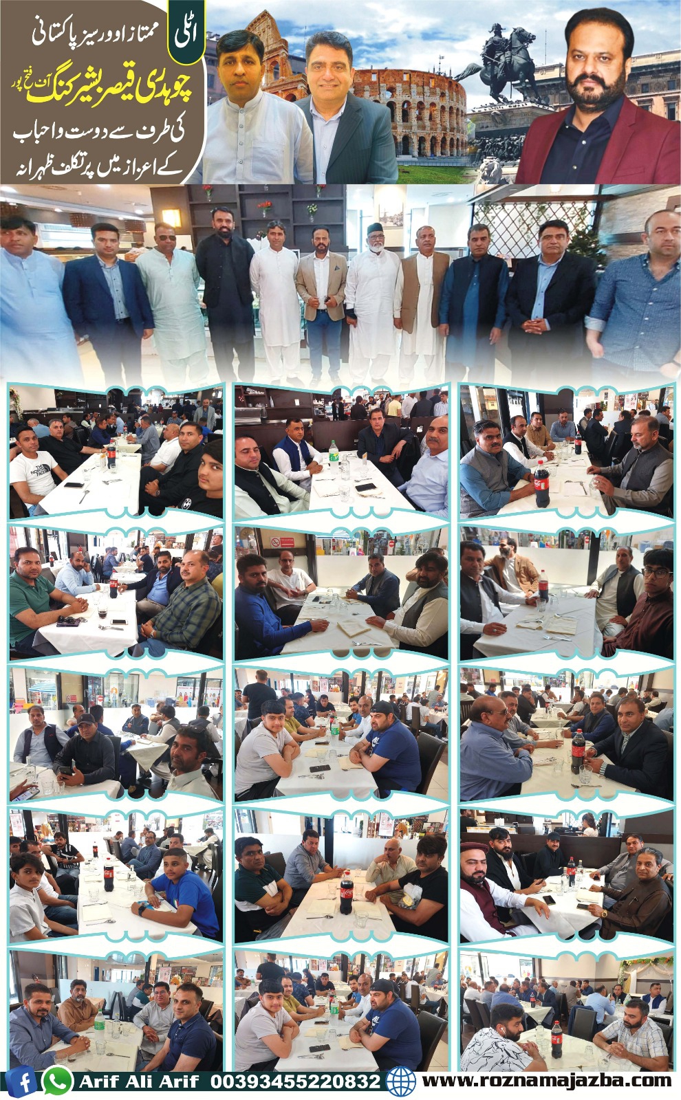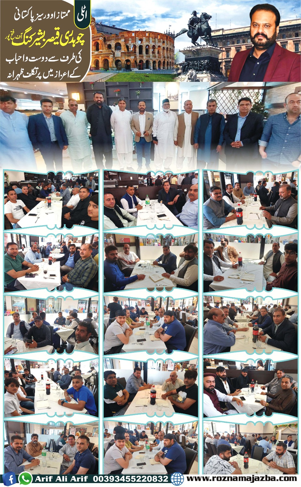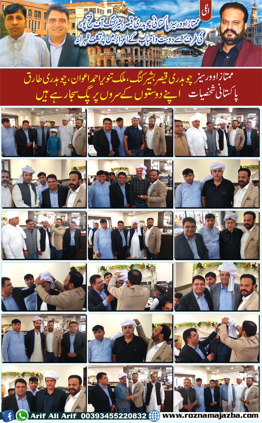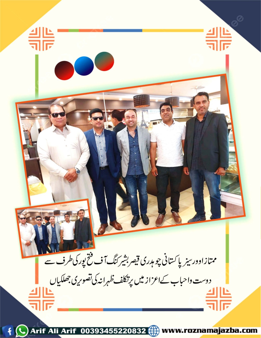 حاجی ناصر محمود زرگر اپنے صاحبزادوں زبیر ناصر ‘ زرگام ناصر ‘ زعیم ناصر کے ساتھ چیئرمین پاک فیڈریشن اٹلی چوہدری امجد حسین رولیہ ‘ سابق صدر پاک فیڈریشن اٹلی چوہدری ساجد سانگ اور ناصر خاں کے ساتھ