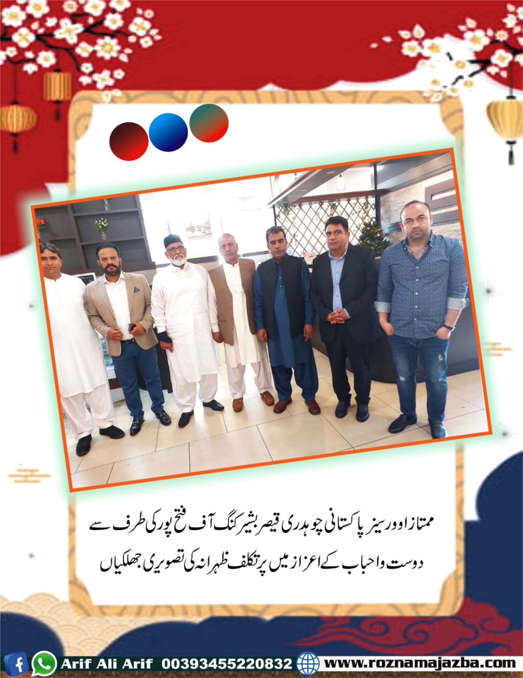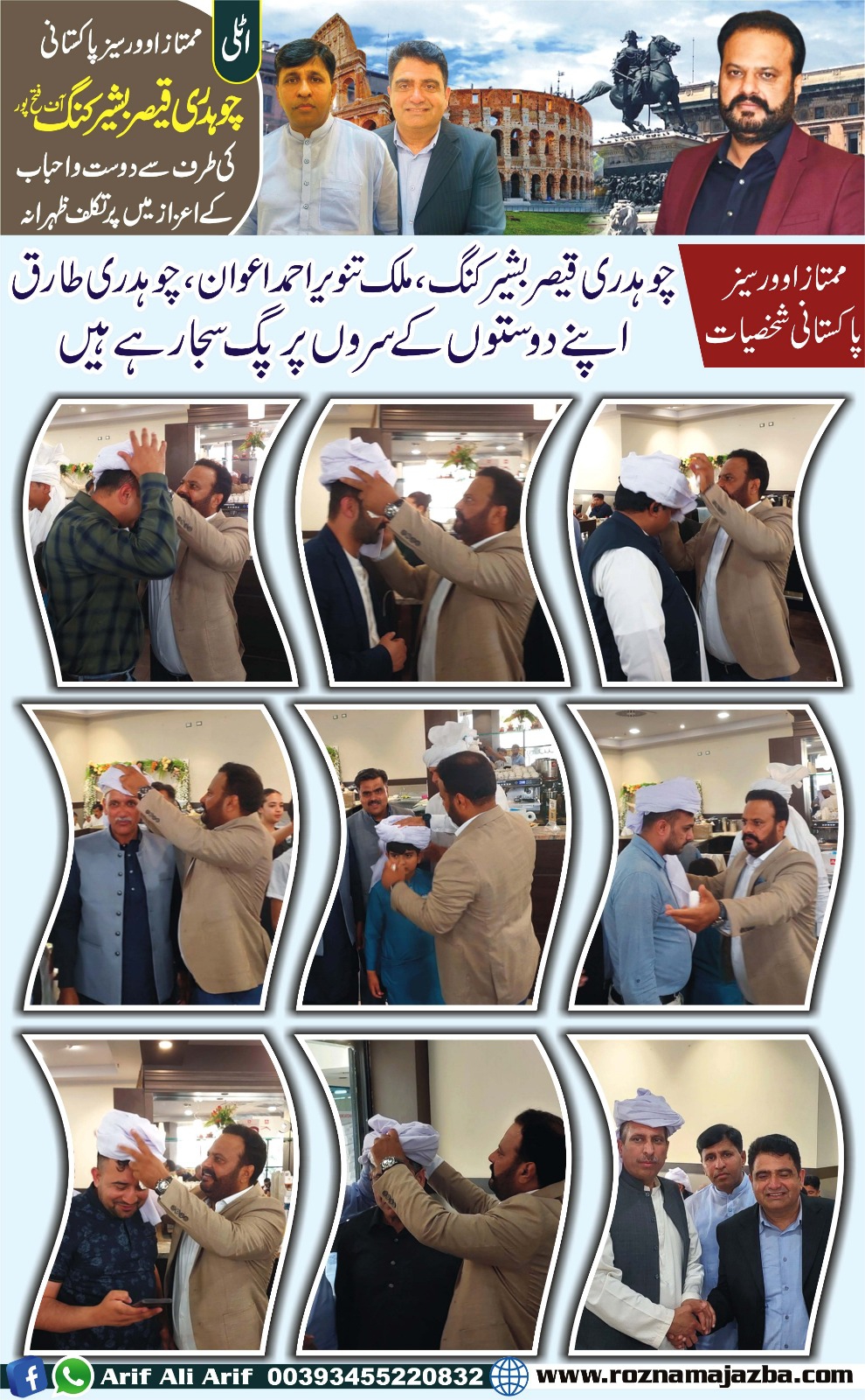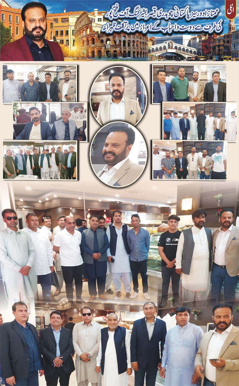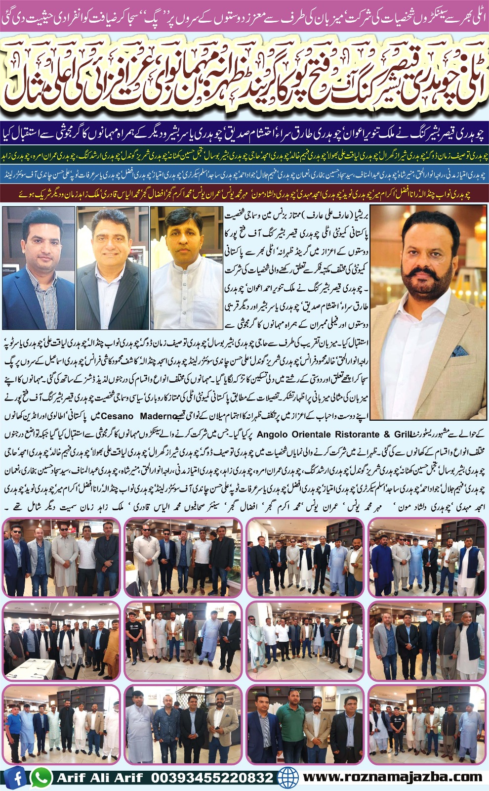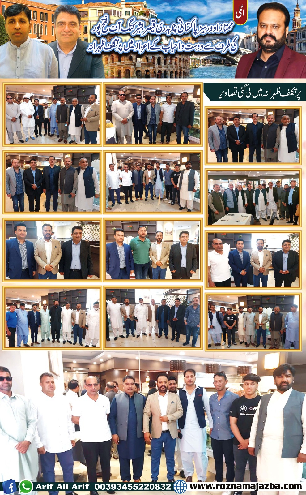 حاجی ناصر محمود زرگر اپنے صاحبزادوں زبیر ناصر ‘ زرگام ناصر ‘ زعیم ناصر کے ساتھ چیئرمین پاک فیڈریشن اٹلی چوہدری امجد حسین رولیہ ‘ سابق صدر پاک فیڈریشن اٹلی چوہدری ساجد سانگ اور ناصر خاں کے ساتھ