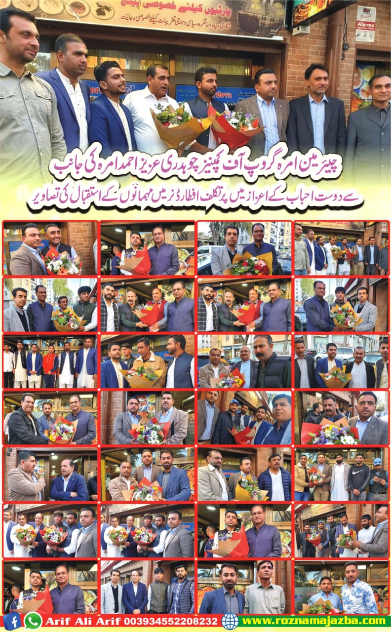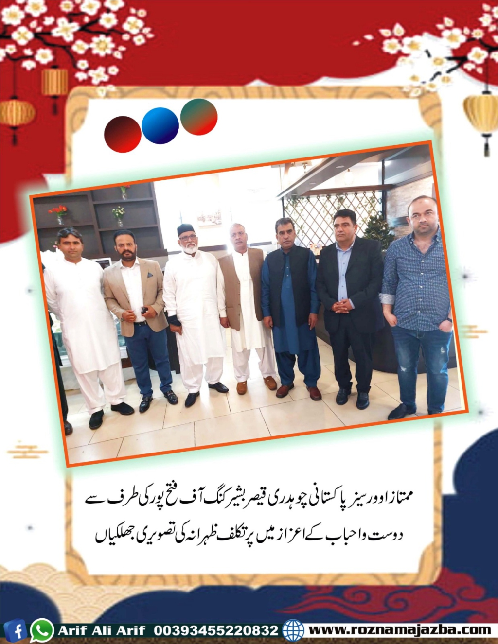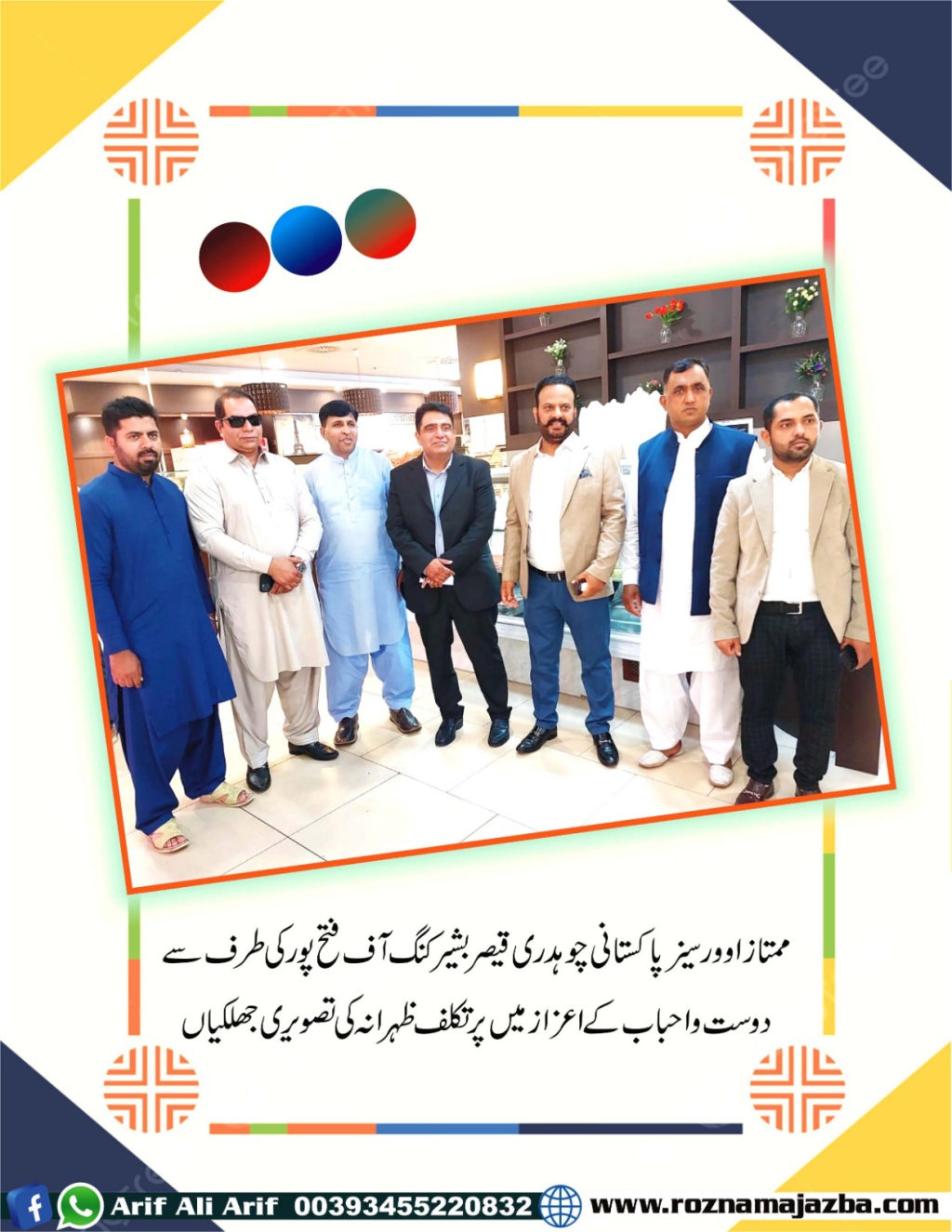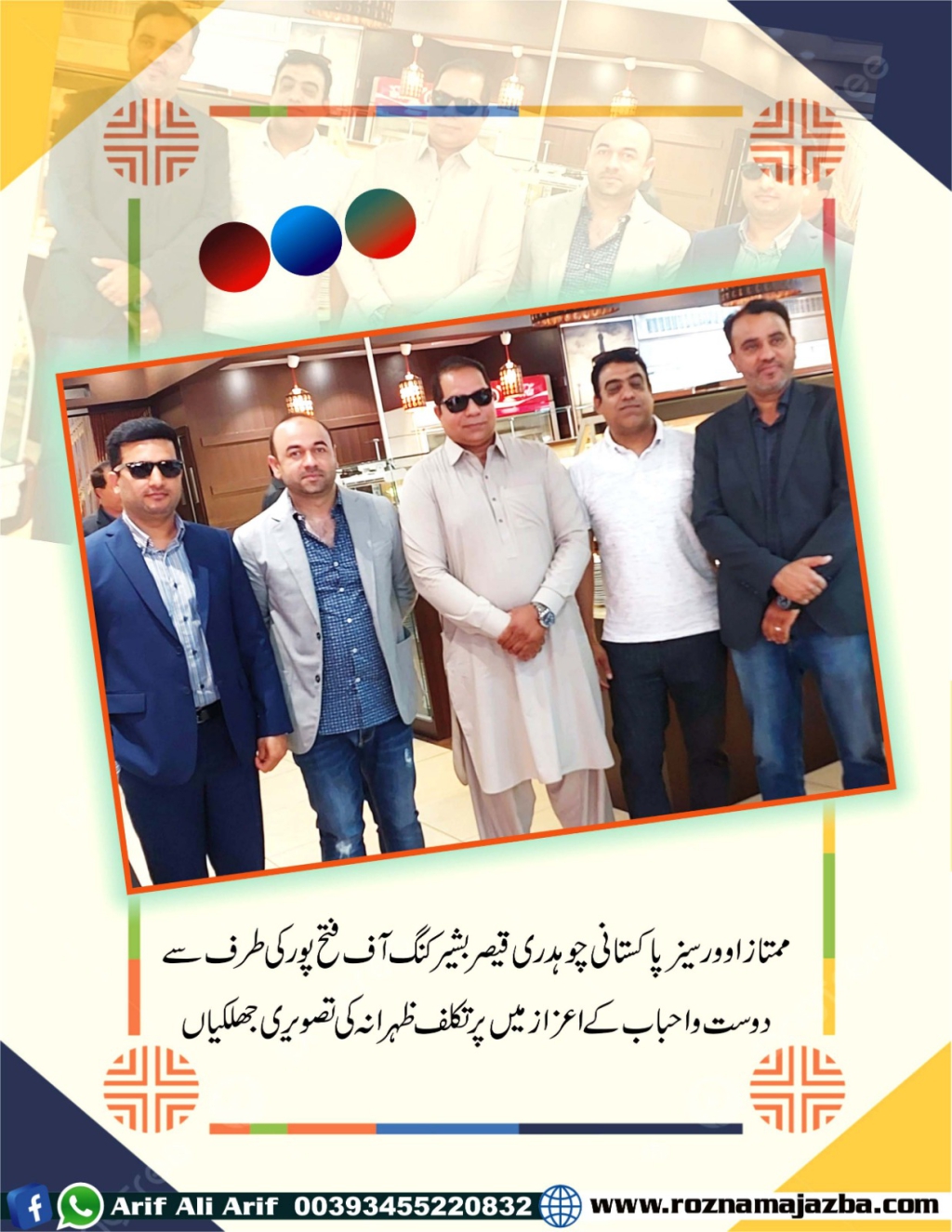 حاجی ناصر محمود زرگر اپنے صاحبزادوں زبیر ناصر ‘ زرگام ناصر ‘ زعیم ناصر کے ساتھ چیئرمین پاک فیڈریشن اٹلی چوہدری امجد حسین رولیہ ‘ سابق صدر پاک فیڈریشن اٹلی چوہدری ساجد سانگ اور ناصر خاں کے ساتھ