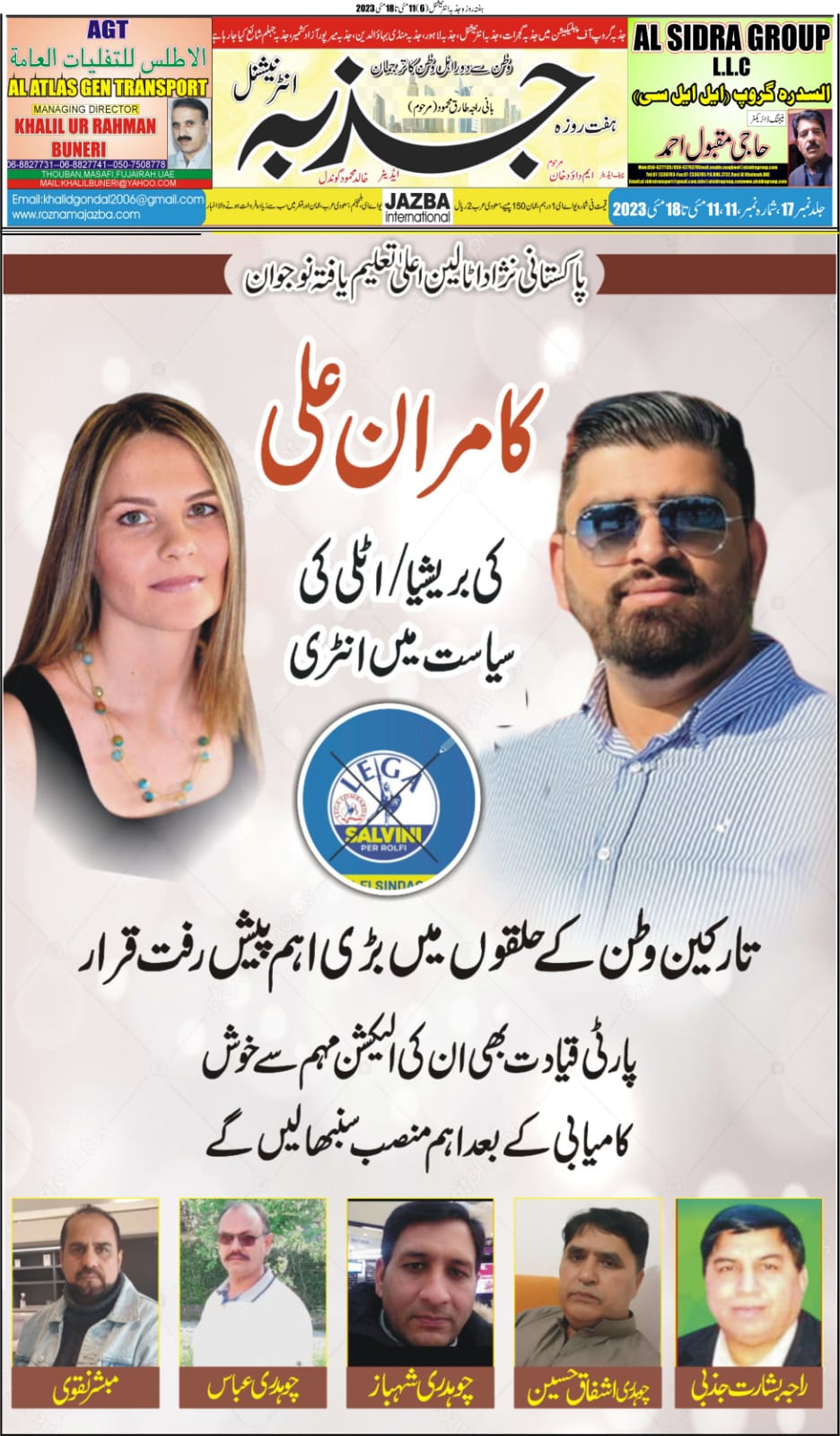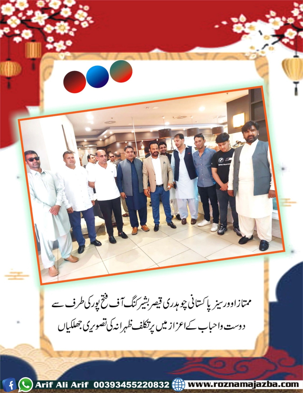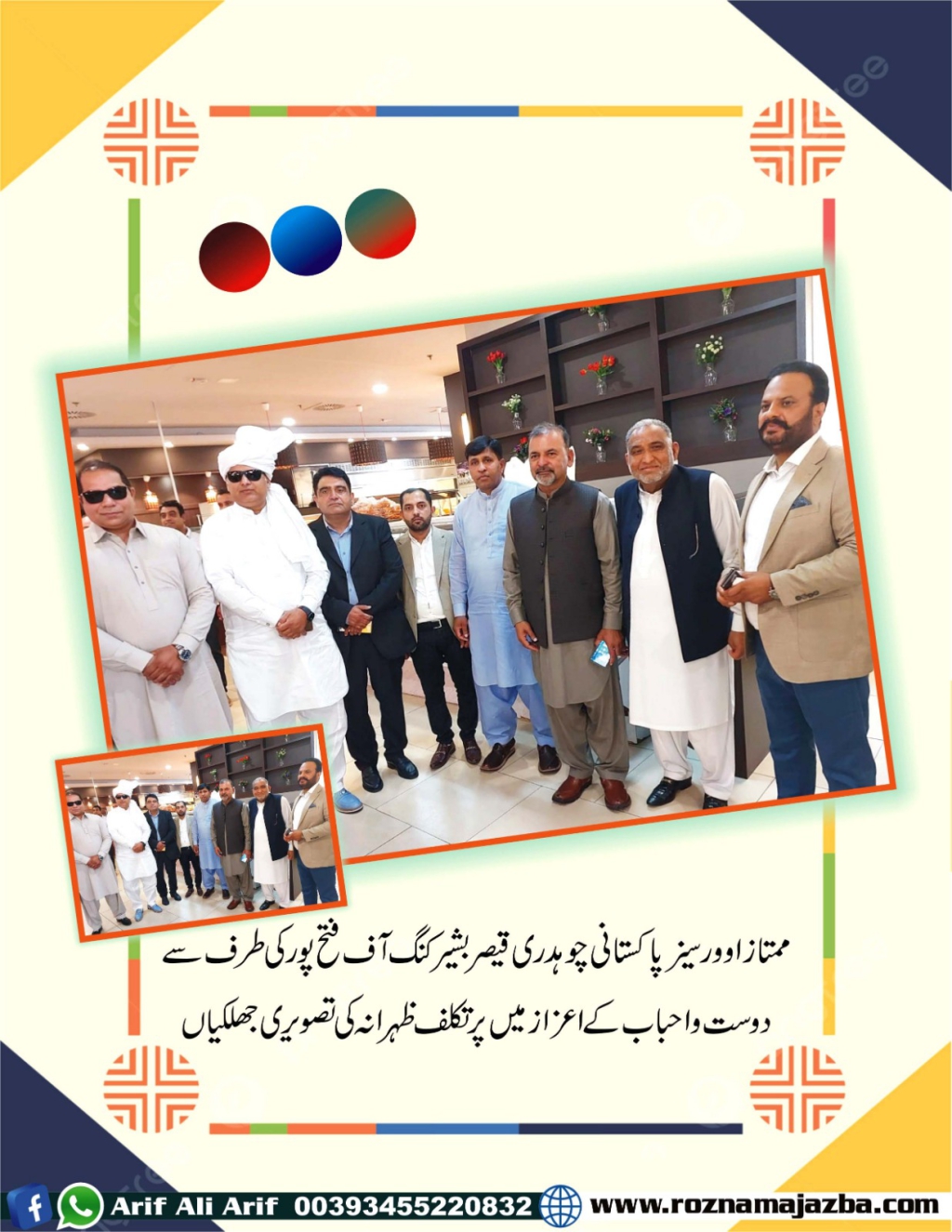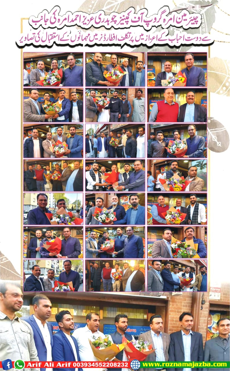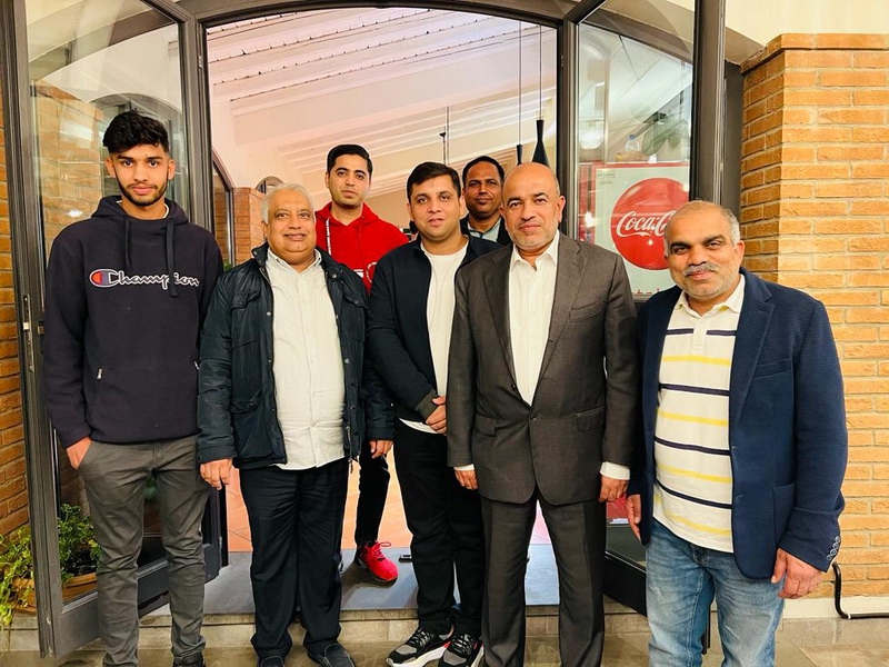 حاجی ناصر محمود زرگر اپنے صاحبزادوں زبیر ناصر ‘ زرگام ناصر ‘ زعیم ناصر کے ساتھ چیئرمین پاک فیڈریشن اٹلی چوہدری امجد حسین رولیہ ‘ سابق صدر پاک فیڈریشن اٹلی چوہدری ساجد سانگ اور ناصر خاں کے ساتھ