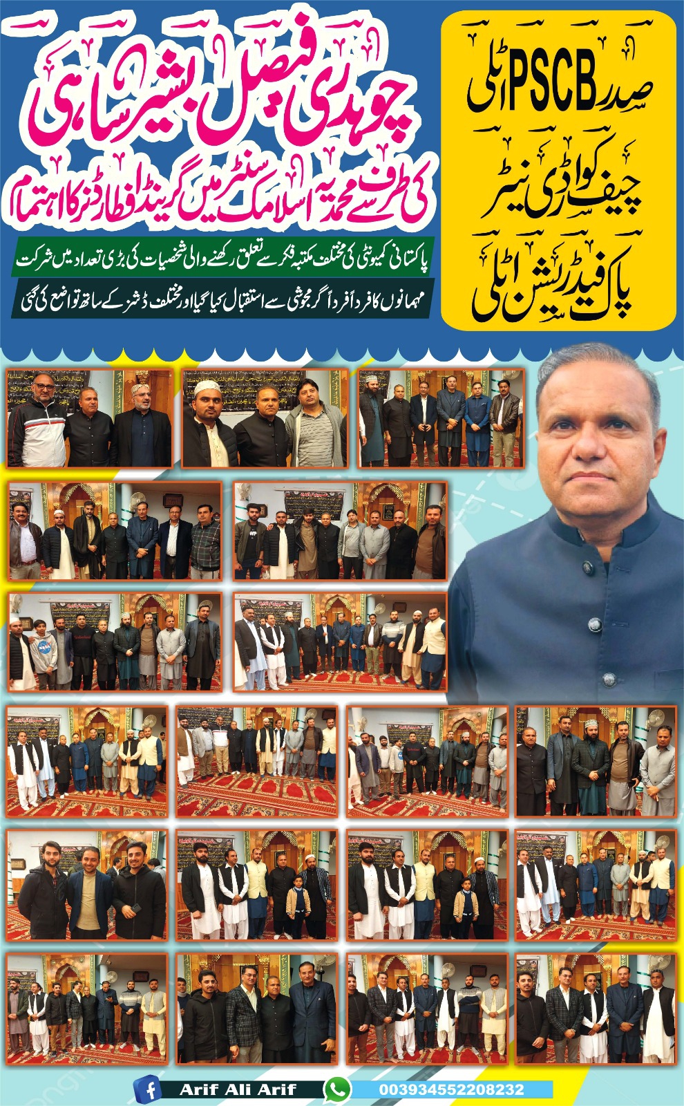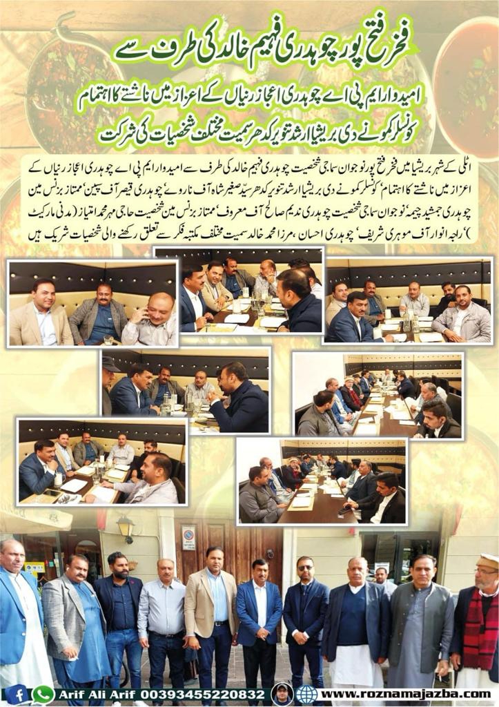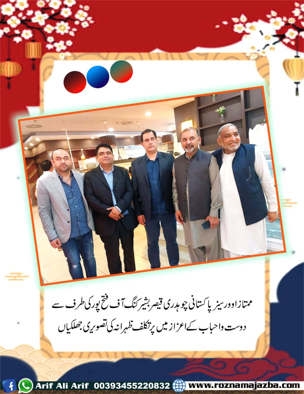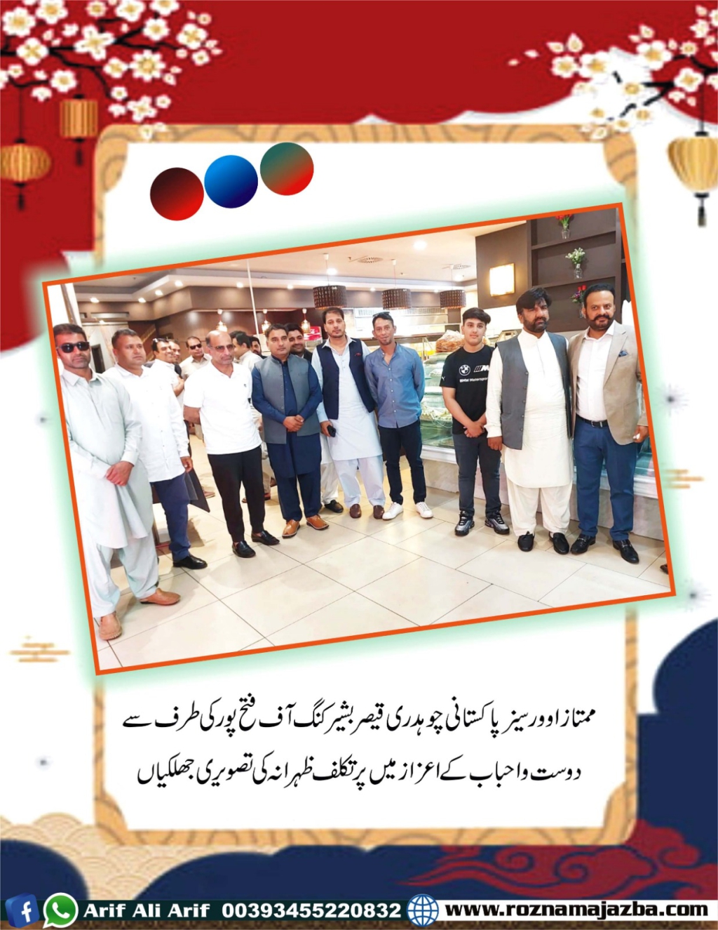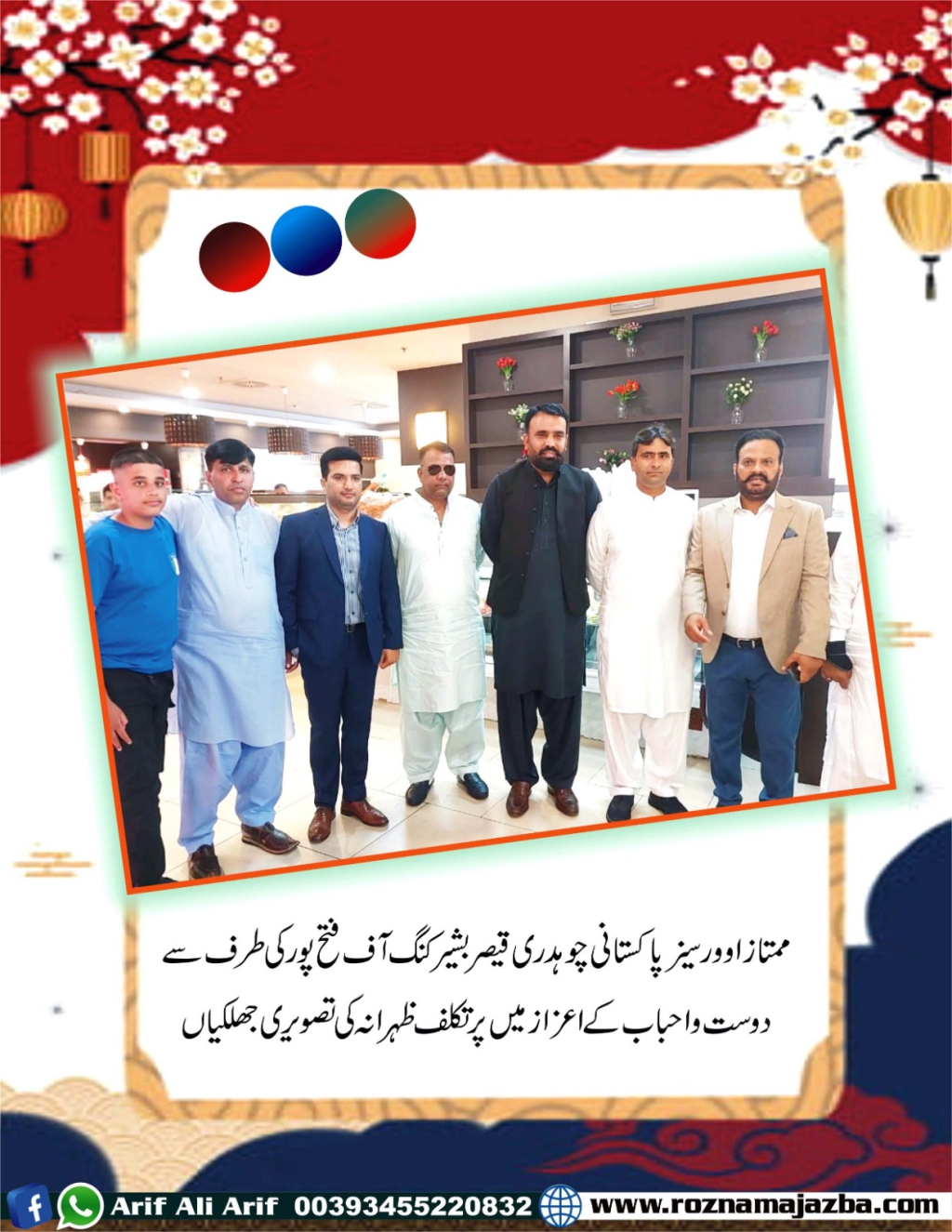 ممتاز اوورسیز پاکستانی چوہدری قمر ٹوانہ اور راجہ عاشق حسین کی طرف سے دئیے گئے افطار ڈنر میں چوہدری اسماعیل سرور بھٹیاں ‘ وسیم شہزاد چوہدری اقبال بھاگو و دیگر شریک ہیں