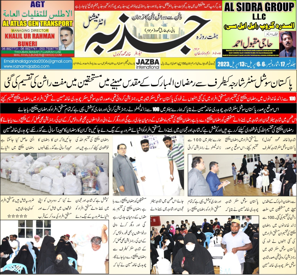 *پاکستان سوشل سنٹر شارجہ کی طرف سے 100 سے زائد خاندانوں میں رمضان پیکیج کی تقسیم-*