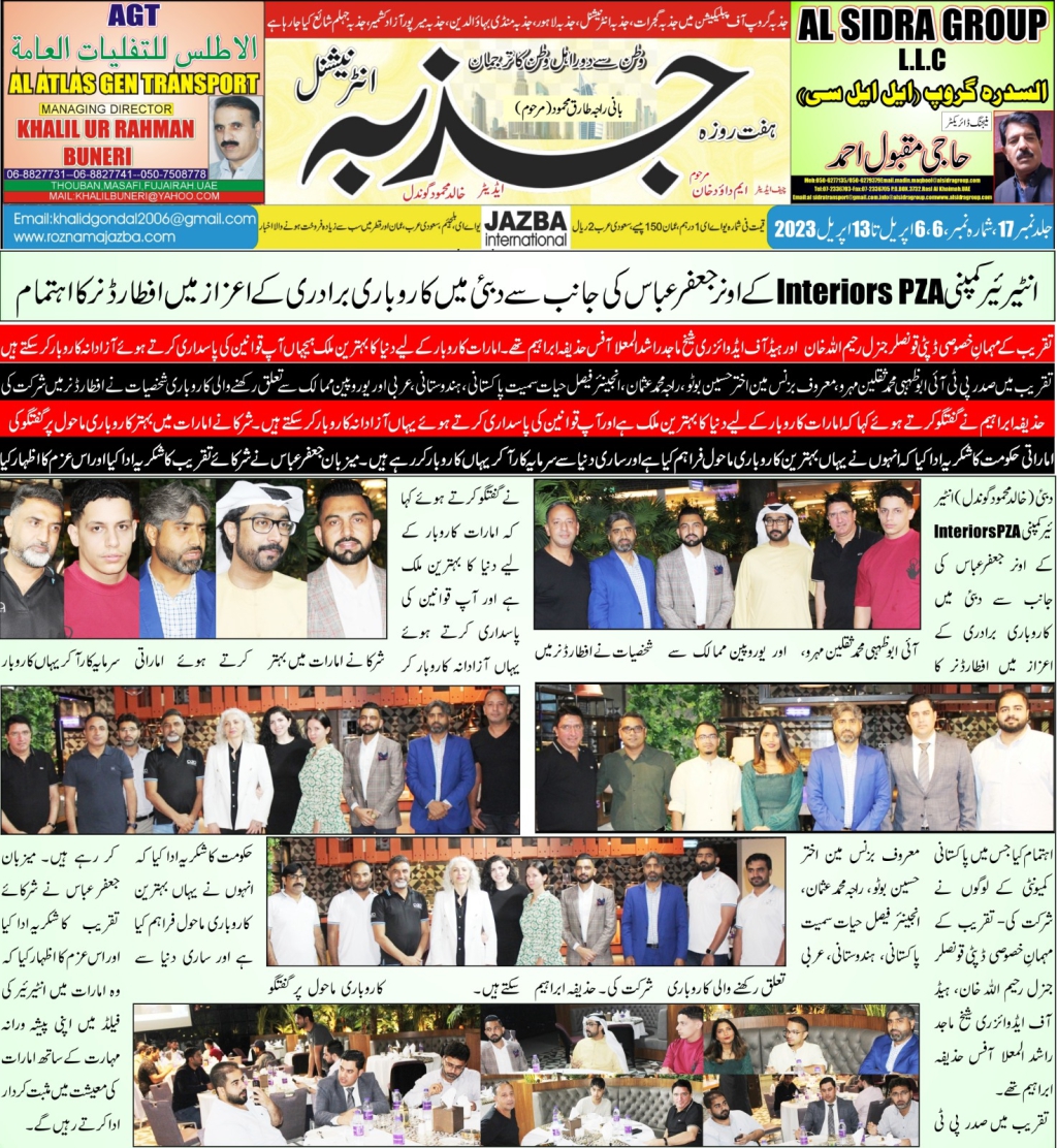 *انٹیرئیرکمپنی PZA Interiors کے اونر جعفرعباس کی جانب سے دبئی میں کاروباری برادری کے اعزاز میں افطارڈنر کا اہتمام۔*