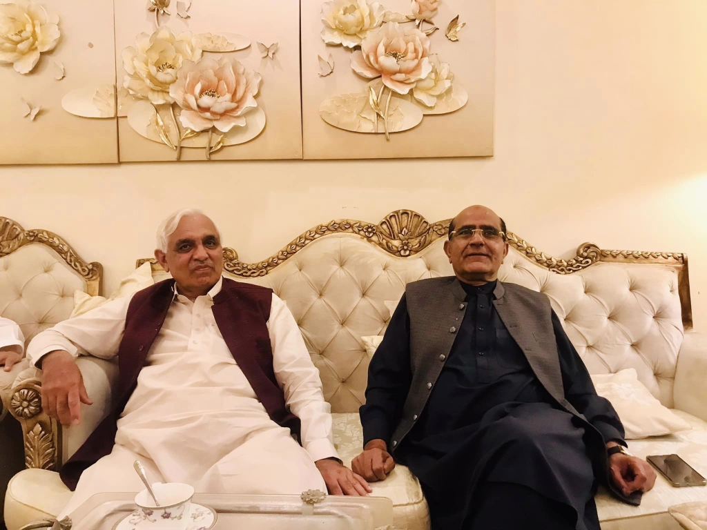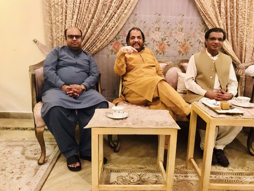 ممتاز شخصیت فاروق چیمہ کی طرف سے ضیافت کے موقع پر راجہ ضیاءصدیق آف بھٹیاں چباں ‘ ابرار شاہ مہر فاروق اور سہیل اسلم خوش گپیو ں میں مصروف
