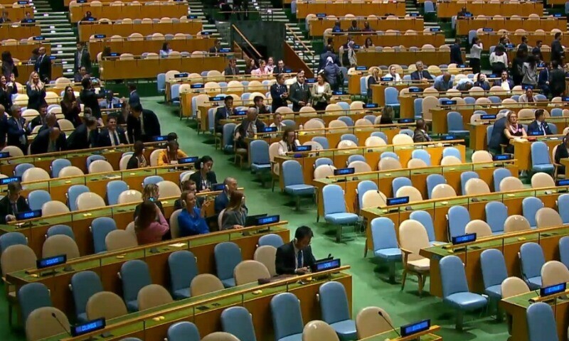 جنرل اسمبلی اجلاس کے دوران اُس وقت فلسطین کے حق میں اور اسرائیلی مخالف نعرے بلند ہوئے جب نیتن یاہو خطاب کیلیے پہنچے۔ جیسے ہی انہوں نے خطاب شروع کیا تو پاکستان سمیت مختلف ممالک نے احتجاجاً واک آؤٹ کیا۔
