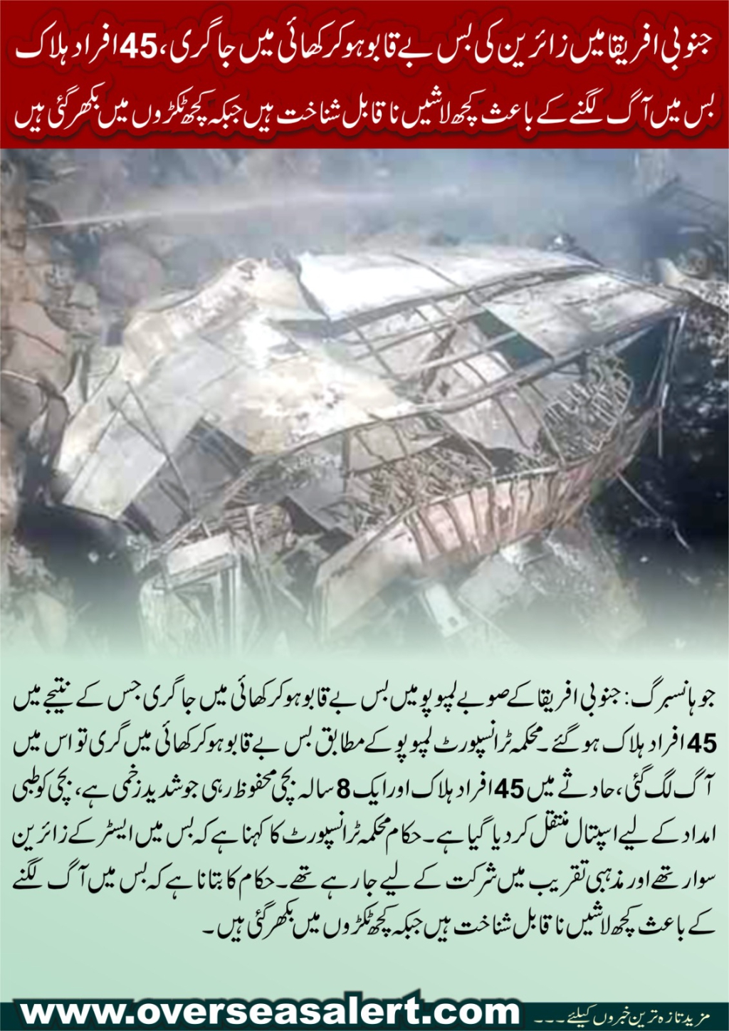 ریاض ( ویب ڈیسک ) سعودی عرب کے جنوب مغرب میں ایک خوفناک بس کے حادثے میں کم از کم 20 عمرہ زائرین جاں بحق اور 29 زخمی ہو گئے۔عرب خبر رساں ایجنسی کے مطابق عسیر ریجن میں عقبہ کے مقام پر عمرہ زائرین کی بس ایک پل سے ٹکرانے کے باعث الٹ گئی جس کے بعد بس میں آگ لگ گئی جس کے نتیجے میں 20 افراد جاں بحق اور 29 زخمی ہوئے، زائرین عمرہ کی ادائیگی کے لیے مکہ جا رہے تھے۔بریک فیل ہونے کے باعث پیش آنے والا حادثہ عسیر صوبے اور ابہا شہر کو ملانے والی سڑک پر پیش آیا، حادثے کے بعد سڑک کو بند کر دیا گیا ہے۔سعودی شہری دفاع اور ریڈ کریسنٹ اتھارٹی کی ٹیموں نے جائے حادثہ پر پہنچ کر علاقے کو گھیرے میں لے لیا ہے۔ریسکیو حکام کے مطابق حادثے میں جاں بحق اور زخمی ہونے والے زائرین کو قریبی ہسپتالوں میں منتقل کر دیا گیا ہے